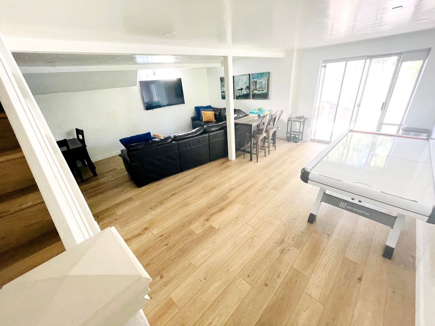 -Basement has standup arcade game and air hockey.